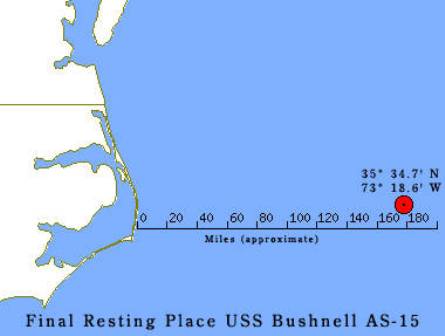 The "Old Lady", Bushnell was prepared environmentally by the Norfolk Naval Shipyard. [Furthermore, she was completely "buttoned up" with all watertight doors/hatches securely